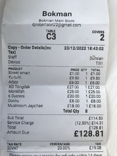 We had the the XO Tongdak (stick to original), Gabli stew (nice but what beef short rib isnāt? This shows as monkfish on the bill), tempura chilli (good but missing something to make it memorable), kimchi oysters (expected more flavour from either the oysters or kimchi) and a Japanese glass noodle and mushroom dish (standard).