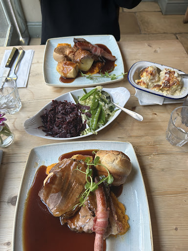 Read moreBooked here for Sunday lunch menu and I would definitely recommend. I had 2 starters as I was so hungry, the soup was delicious, it had that wonderful homemade feel and texture to it. The cheese soufflĂ© was good, fun texture, but the flavour was a little bland, not as cheesy as I had anticipated. The roast itself was wonderful, my friend and I got the combo roast and our server Nicky was lovely enough to give us extra beef as we did not like turkey. The gravy was thick, flavourful. Personally I prefer my beef pink, but I was not disappointed! It was so tender, and so was the pork. The pork was amazing, so meaty, very little fat, and super tender, it passed the fork test. The sausage was a little lacklustre, quite salty, and a bit of a flat texture. Overall, it was delicious. My only disappointment was the service. Our server Nicky was lovely, but it was quite slow and at times, did not feel very attentive. We had to try to catch someone to get us another drink. However, I understand itâs Sunday and the restaurant was getting somewhat busy - good sign! If you want a chilled afternoon, not in a rush and good food. I would...