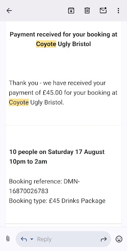 Worst bar in Bristol! Reserved 2 tables for my neices hen party for 20 people, I was running behind as me and two others walked a member of our party to a taxi rank so they weren't alone in town but told the rest of our party to carry on. On arrival the bouncer refused entry to our hen party saying that there was too many of us so we needed to pay another £45 for an extra table (even though I had already paid £90 for 2 tables of 10 people and there was now 18 of us) they argued that tables are only for up to 8 people! So why allow me to book for 10?? As I wasn't there my mum went ahead and paid the extra £45 as she didnt want the group waiting outside as some were elderly, she seated the group and waited at reception for me to arrive 5 minutes later. I showed my email receipts showing booking and they said to go sit down and they would find a manager and arrange a refund for my mum and some complimentary drinks. All was fine until my mum was heading home and we still hadn't spoke to a manager so we went to chase up about the refund to which we were then told that she couldn't have a refund as we drank the "complimentary" drinks which were still sat on the table (but they couldnt take back as they had already served them!!!) and that a table only seated 8 and that we had more (again why not state this on the phone and allow me to book a table for 10?) They they said that we weren't forced to pay the extra £45 for entry and after arguing back and forth the bouncer admitted yes he did. Manager said tough basically no refund! So my mum left after between us paying £135 for 2 tables! Within the next half an hour the hen was then assaulted by another customer (we have no clue who she was) so we reported it to the bouncers who then went to speak to the woman the bouncers then came back to our table to tell us we had to leave as we had pushed her! Of course we did we pushed her off the hen who she was grabbing by her hair! BUT we also were the ones who reported it!!! When we asked the staff to check the cameras they said the THREE!!! Cameras by our table all had blind spots of our table so would be pointless and that we just need to leave! So we did! Out of pocket! Completely sober as we hadn't even drank majority of the drinks that they charged us for! And with our night completely ruined! So after an hour and half of being in that place and feeling utterly deflated we called it a night and went home!! I'm absolutely disgusted with the way we were treated and coyotes customer service and if i were you I would avoid the place!!!