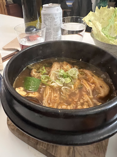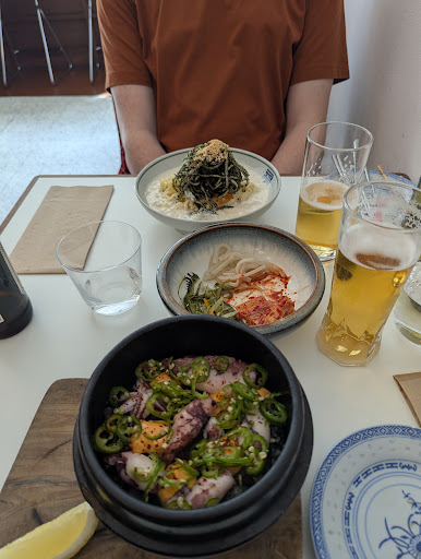 Good bits- Food is really good. Asian tastebuds would give it 9/10. We ordered 2x lunch sets one with grilled pork and one with soya milk noodle. Grill pork is just as I expected, nicely grilled, tender inside. Soy milk noodle is just right for a summer day so refreshing but the flavour is also rich. Banchan is 10/10 I got no complaints (btw kimchi is goooood) the soup of the day is a spicy shrimp soup quite a surprise choice using seafood but really really rich i like it. The restaurant sits in a quiet street atmosphere is airyâ¨