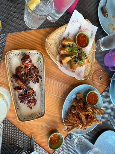 I have ordered thai red curry and my partner had a lunch tapas starter with 4 smallers dishes (don't remember exactly but it included prawns, some kind of small salad, fried rice with pinapple and green curry with beef), morning glory and giggling wings.