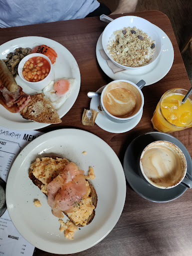 The Menu is large and lot of sweetest cakes are available for a good price. You can also have a cake and a coffee for less than 5ÂŁ so perfect deal if you craving some sweet with your coffee. English breakfast was as expected, a large bowl of granola and the salmon and scrambled eggs on the sourdough bread was really generous ! (I think the salmon was not the freshest but at least I got quantity of it and that's something missing usually as you have only one small piece of it ..) It starts to be busy by 11am.