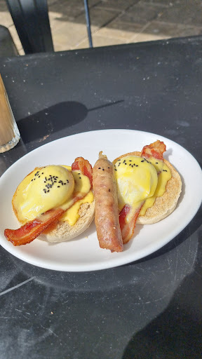 Read moreI should have kept walking. I arrived shortly after it opened and wanted to kill time before harbour festival started so opted for a brunch here. I watched tables that arrived after me get their food and drink first, it took 25min for my coffee to come out, and only after I prompted the lady who brought my food (but no cutlery). The £4.85 coffee was OK, and the view across the water was lovely, but the "Many Benny" Eggs Benedict was the worst Benedict I've ever had. The sausage was so dry that it felt like it had been either been reheated or sat under a heat lamp, the muffins texture felt stale and the hollandaise sauce tasted more like congealed melted butter. Finished with some onion seeds for decor but totally lacked in taste. Definitely not worth the £14 price tag. It's like this place tried to follow the Lounge cafe model in their design, but with a new Lounge opening just 100m further along the harbour I think they'll struggle to compete with their lower prices and consistent quality (I had a look at their menu on my way back and they're £4 cheaper). Up your standards to meet your prices or...
