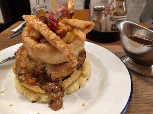 Read moreThe pie was nice, but none of the promised sides arrived. This happened to everyone in the group who ordered the festive feast. When we queried it we were told thats what was on the order. There was a large group of us so didn't want to make a fuss. I paid my bill but it is only since getting home I have realised I was charged £11.90 for a pie a bit of gravy and a diet coke, no veg, no mash, nothing! I assume the extra 1.70 was a service charge? Really disappointed and I won't be back, the pie is not that good and the service certainly wasn't worth it either!