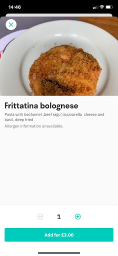 My girlfriend and I were very disappointed to receive essentially a Mac and cheese frittatina, when we ordered the âFittatina Bologneseâ on Deliveroo. On leaving a review, the owner responded and told us it was clearly labelled as a cacio e Pepe - because rather than admitting they had delivered something completely different, they actually changed the name of it on deliveroo and told us we were wrong!