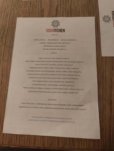 Read moreSo, we have been to Souk kitchen many times as we are local. The food is always fantastic. But we will not be visiting again. We went on Saturday at 7pm, after booking a week or so in advance. It was fairly quiet when we arrived but the table we were given did not allow for the people at either end of the table to sit down, due to someone sitting on a stool at the window and general lack of space. The waiter very kindly moved this when we asked. However, we then received possibly the rudest service all of us had ever experienced from the waitress who seemed to be in charge. It was a special birthday occasion, which was sadly spoilt. Although everyone enjoyed the food, I could not due to feeling so incredibly uncomfortable, unwanted and quite frankly sad. We are fortunately very lucky on North street to have so many places to eat with LOVELY staff. We will all look elsewhere...