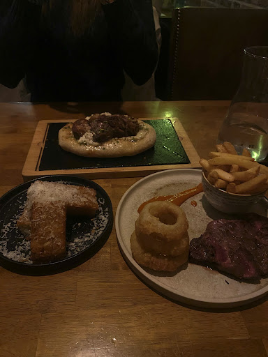 We arrived at 5:30pm for dinner, and were the only table inside at that time. The atmosphere was lovely, very calm, quiet, with nice relaxing upbeat music that made it easy to chat and feel relaxed. They had a deal for 2 main meals and 2 glasses of Cremant for ÂŁ40 which we took advantage of. We also ordered the rosti starter to share, and dessert after.