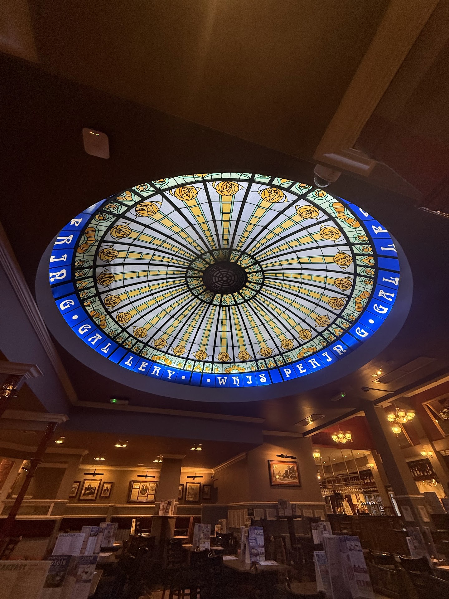 Large pub with a stained-glass dome and a small whispering gallery in a former shopping arcade.