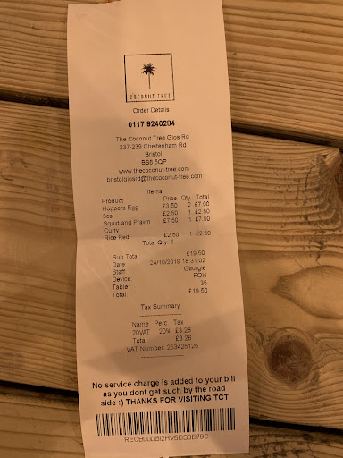 What an absolute joke. Coconut tree: please put warnings on these dishes, and cater more to people who canāt take absurd spice. We thought better of you and now have a ruined evening and Ā£20 odd quid...
