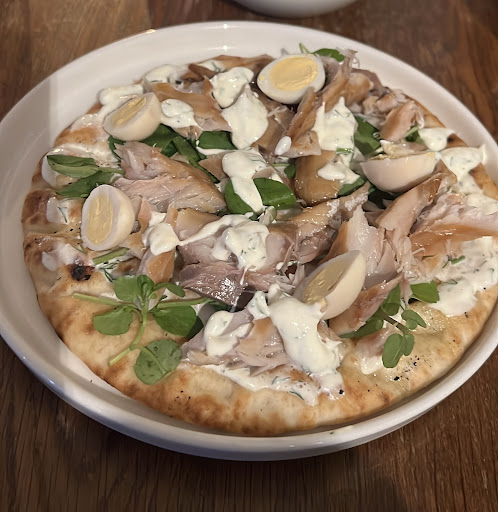 Three of us opted for Butcombe Gold beer-battered haddock and chips and one for the hot-smoked chalk stream Trout Niçoise salad. The fish and chips was plentiful with crisp batter, the salad ok but we felt a bit flat as we would all have had the pies.