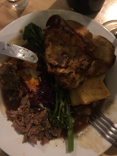 Been here a few times, nice atmosphere and good beers, cosy pub. The beer ‘garden’ is a bit grim being that it’s actually a bit of space between the pub and the building next door looking out on to the busy church road, but at least there is an outside space I suppose. We came for a friend’s birthday / Sunday lunch and were put in the very back room which although spacious and enough and decorated fairly nicely was set out sort of looking like a children’s birthday party and with a door directly on to the kitchen which was a little off putting seeing the kitchen staff sweat out while slinging cauliflower cheese in to dishes. The manager was very nice and had left his phone there so we could put on whatever music we liked. Good job too as, by his own admission, he had booked too many people in to the 3pm slot so we didn’t even start getting our food until nearly 5pm. This was a slight worry as we we had travel booked back to London at six thirty but we managed to wolf it down and made it in the end. As for the food itself, my partner and I both ordered the small roast (as opposed to the regular or children’s sized roast). This is something we often do in London as we find too big a roast can be a little sleep inducing and you usually get plenty with a children’s roast. It has to be said the portion here was a lot smaller than either of us expected and we probably wouldn’t order the small again, particularly as the portion of meat (I had chosen lamb) was so tiny. The food itself was good and the gravy was yummy which is crucial for me. The lamb was kind of shredded up which was a shame as it seemed as though someone had chewed it up and popped it on the plate. The cauliflower cheese was good, nice and crispy on top and creamy inside. Friend ordered the pork which was also yummy and much better sized portion. Enormous Yorkshire’s as well if you’re in to that. Overall would defo visit again but not in a large group and not ordering the small roast if you want more than a couple of...