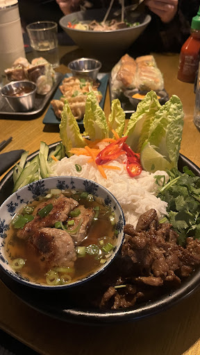 Read moreWe wanted to try this viet place for a few months and heard it was good. We finally got round to do this with some friends as a nice Saturday lunch gathering. Everyone arrived within 15mins of our booking time. As we arrived separately some of us needed a bit more time on the menu but the staff came back very quickly to push for our orders. With a big group ordering of course would take time but the staff was not patient and gave us black face. Her voice is also not friendly. The food was only ok, gyoza is very dry, summer rolls are better but it had to be taken back into the kitchen to cut into smaller sharing size, the beef pho soup is alright. One of the serving staff is particularly moody and pushy and not helpful. They seemed to be staff sufficiently but when we asked for a saucer it never arrived. Dish prices are reasonable but the bad service and below average food quality didn’t justify paying £20+ per person. Would not...