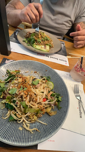 Read moreWe came in later in the evening and expected to be able to get something tasty. The first problem was that almost half of the items on the menu weren't available. Our choice ended up being a couple of starters for myself and katsu curry for my guest. The vegetarian katsu curry, although looking a bit sloppy and grey green, was reported to be quite tasty and enjoyable. My first starter was the gyoza which are normally steamed and then crisp fried. I assumed that it would be served the usual way but to my surprise the gyoza were lukewarm and certainly hadn't been browned. I sent these back and they were returned to me 30 seconds later still lukewarm. I guess that the microwave settings must not have been quite up to snuff on the night. I got through the gyoza and then received my deep fried prawns. I will say that the prawns were well cooked, hot and tasty. The sauce was spicy and there was lots of it. Unfortunately this is the second time in a row where I have been to a Wagamama only to find problems that made the meal less than it should have been. I’m not sure that there’s a good reason go back to them if there are...