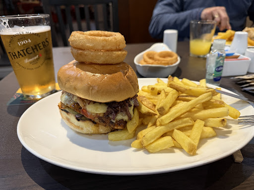 Unfortunately, the food doesn’t live up to the setting. The mutton was cooked nicely but lacked depth of flavour — surprisingly bland for a dish that should be rich and aromatic. Chips arrived unsalted, which the staff attributed to EHO reasons, but basic seasoning is non-negotiable in any kitchen. The side vegetables looked and tasted processed, arriving dull and grey, while the burger seemed bought-in and poorly presented — limp lettuce, no real care in prep, and a generic patty that didn’t inspire confidence. The gravy also tasted suspiciously like Bisto, which only added to the sense of corners being cut.