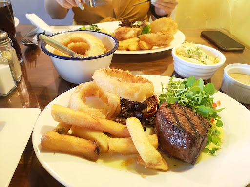 Read moreservice! Shown to our table 5 minutes late due to the previous customers still using the table. Chose drinks then immediately asked for our food orders. Natalie abruptly demanded our order as it had to be with the kitchen immediately, she then relented and came back less than 2 minutes later. Of 5 guests only 2 of us ordered starters, of which my mother in laws prawn starter came out with butter but without bread rolls, on asking for the bread Barry responded 'I'll sack the chef immediately and put an advert on indeed for a new one!" I'm sorry but if the kitchen makes an error there is more room for sarcasm an apology and I'll rectify this would have sufficed! The beef stroganoff was more mushroom. Stroganoff with the odd piece of beef and my chicken was half pink! The battered cod ordered by my daughter what pathetic! She's a VERY small 11 year old and rarely finishes her meal,she ate the small potion which was mostly batter and was still hungry.