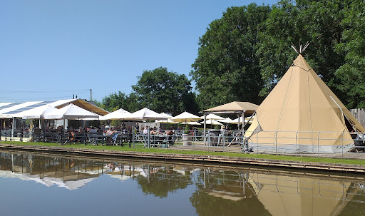 16 July 2021: After getting down the 29 "Tardebigge" locks and mooring up just before the bridge and Queens Head, refreshing drinks and maybe a bite as it was coming on for lunch was certainly the right decision... We walked over and got a table inside as the sun was gloriously hot outside and also there weren't many outdoors tables left. The Queens Head is quite a big spread out indoors and outdoors restaurant and country pub by the canal side but it keeps itself inviting and welcoming and doesn't feel too excessively big... Social distancing was maintained, masks needed on entrance and the staff were friendly, cheerful and attentive. The toilets were very clean, nicely decorated and modern.. The decor inside is a mix of contemporary, soft cosy materials yet keeping the character of the original building itself and do like the wood...it all works as its relaxing and inviting. Outside, the landscaped gardens and seating area offer a very tranquil, picturesque feeling and being right by the canal side on a beautiful sunny day can't get any better... The Tepee is rather quirky especially as the numerous modern art pieces around the area where we were having lunch all had a "hee..haw" Cowboy theme...(it would be interesting to find out what the connection is?)