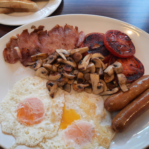 Took my friend for breakfast, I ordered set 2 and my friend ordered set one, we was asked by the waitress if we wanted drinks so I had tea and coffee for my friend the waitress came back with 2 teas easy mistake so I told her we asked for one coffee and one tea so she gave the tea to another table and got my friend a coffee the breakfast came both where set 2 so i was just about to tell the lady but my friend said don't bother because we won't be eating breakfast at the same time The breakfast was OK but lacking in quality. With food prices rising I think the quality of the food is going down hill. My advice is to us all tighten your belts and cook it yourself at least you can choose the quality of the food yourself. If you want free ranged eggs you won't find them...