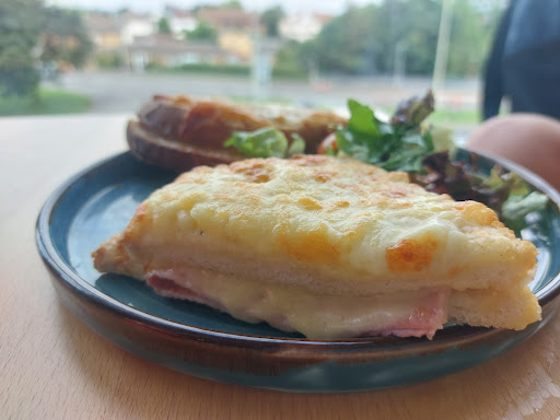 Self service screen out of order… we order at the till with a gentleman who quickly and abruptly informs us the toaster is broken! But we can have fried slice it bread and butter which we accept.