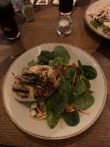 Our food Pie/chicken skewers fab Guest Roast was turkey slices which were chargrilled beyond being edible on some slices. Potatoes very sweet. Gravy delicious. Veg was sliced carrots a few peas and some cabbage. Massive Yorkshire. Looked good but burnt meat left a terrible taste. 6yo had cheesy pasta which was pretty inedible once it had cooled slightly (after another waitress had checked in with us) 2 pieces of cucumber. Half a tomato and some lettuce for 5quid. Desserts all lovely though 6yos small triangle brownie was so solid I had to cut it with a knife and a lot of force. 3quid. We spoke to the waitress 're pasta and burnt food and asked for the childrens meal to be taken off receipt as she'd eaten nothing. This was done but meant the drink was no longer free as part of the children's deal and came through at 2.10!!!! Almost as expensive as a beer..... On receiving the receipt we realised we'd been overcharged as some meals had been put through as large (regular) not small (light) though in hindsight they were all the same size. This was amended in a tense fashion.