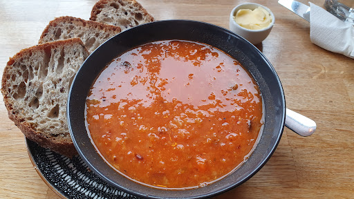 The tomato soup with sourdough was lovely.