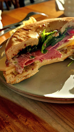 I'd initially only nipped in for a coffee to waste ten minutes until my bus was due, but having peeked at the menu, I couldn't resist ordering myself a New Yorker Bagel. Spoiler alert - I missed my bus. The bagel came alongside a generous portion of Lancashire Crisps and a side salad of rocket, cucumber, and tomatoes with a balsamic dressing. The bagel itself was packed with pastrami, Emmental cheese, gherkins, and rocket with a good smear of whole grain mustard and healthy dollop of mayonnaise. Everything tasted really fresh and the salad was lovely and crisp - it was delicious and really filling too.