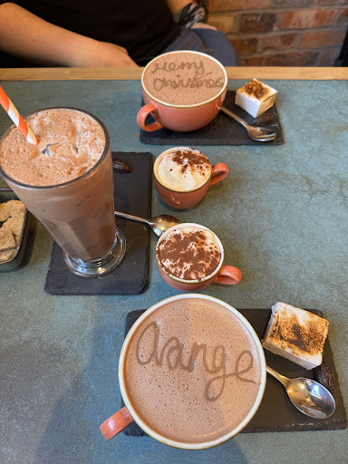 Read moreCame here as we were staying down the road for a weekend away in the area and a colleague had visited a few times. The cafe was beautiful inside and the hot chocolates (orange dark chocolate and regular dark chocolate) with the homemade marshmallow and the pot of cream were the best we had ever had (even better than what we make in our hotel chocolat velvetiser!!) . We also had a hazelnut praline chocolate milk over ice which was delicious. It came to around £16 for our drinks which was worth it given the quality.
