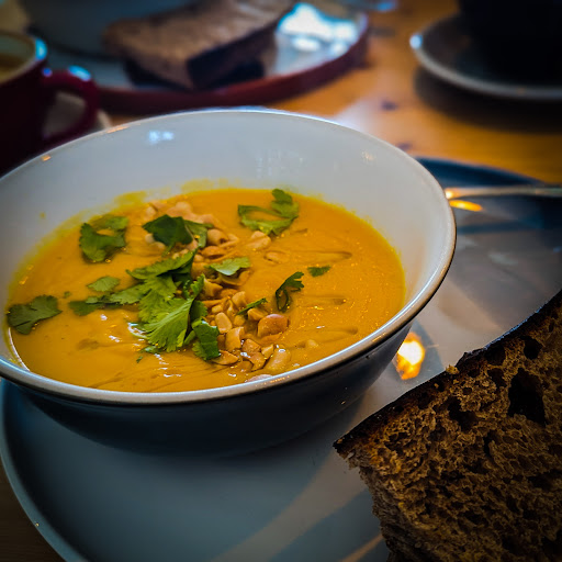 Popped in to this amazing little cafe whilst our Daughter was at a party locally. Looking for somewhere for a quiet bite, we took a punt for here over Starbucks. It was evident we'd made the right decision as soon as we walked in đ Amazingly minimalist and spacious interior; you'd never be sat on top of each other. Such an inviting and serene atmosphere, the kind of place you could come and happily spend a couple of hours catching up with friends or losing yourself in a book. The service was outstanding; engaging and knowledgeable about the bespoke cuisine and drinks on offer. It's always refreshing to speak to someone who's enthusiastic about the local suppliers they use. We had a chicken sandwich with bread from a bakery in Stockport and a Carrot soup that had the most gentle and moorish flavours. Sooooooo good. So for two espresso based coffee's (hand crafted), two lovingly made chicken sandwiches using artisan bread and a soup that I'm not sure will ever be beaten, it was just shy of ÂŁ30. There was more than enough food and I'd personally say I could see where each of those thirty pounds had gone. If you want to sit and soak in an experience, I'd definitely say it's worth it. The coffee is available to go and given the number of in and outs we saw whilst there, it's clearly a real destination for those who can appreciate the beauty of a bespoke, handcrafted hot drink. Thanks to the guys at Farrars, for looking after us and making us...