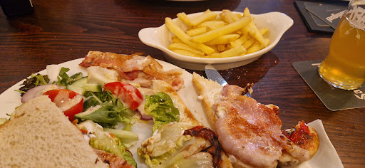 Chose this pub for lunch as it was a green king ,but I was very disappointed. Me and my mum wanted a tea and coffee and the machine had broken ,and the barman said it was being fixed,so fair enough. I asked for a punk IPA they didn't have it,so I asked for a soft drink but not much choice as other green kings I've been in. We ordered 2 jacket potatoes with cheese and tuna,we waited over half an hour which was ok as we weren't in a rush,the pub wasn't busy,a handful of people in. When the potatoes arrived it wasn't well presented,there was a tiny bit of tuna on the potato and hardly any cheese I didn't see any butter it was very dry. So I thought when someone comes to ask how our meal is I will tell them . Noone came and asked. We went to the toilet before leaving,a coat hanger was on the floor in mine along with toilet paper. I looked at the other toilets they were dirty as were the sinks. I wouldn't go here again or recommend it. The barman was friendly but served a man before me and I was at the bar first ,I just...