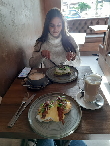 It might be Mother's Day but dads sometimes appreciate a day off as well so it was off to Krave for brunch. Hot there just on 10.00am BST or 9.00am GMT, which isn't too bad for a Sunday. Plenty of free tables, the calm before the storm, and no queuing to order. All good so far. Breakfast pancakes for two, to be served with an apple juice and a large decaff skinny latte. Drinks arrived promptly and the background music is relaxing and unobtrusive. I'm not convinced that this is a large latte but I'm halfway through it before that occurs. I'm also halfway through it when the adjoining table of four who arrived and ordered some ten minutes after us gets their order of full Englishes. It's half an hour after we ordered when our food arrives and by now, they're warning patrons of a 30 minute wait. The sausage patty is the highlight, then the fried egg, just runny enough but not so much to be messy, then the stack of pillowy pancakes. There's not enough of the bacon shards to form an opinion. It did the job and by now seating is at a premium and takeaways are leaving at a pace so it's definitely popular. Mission...