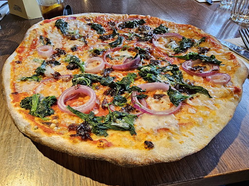 Read moreI have been multiple times and normally have a fairly decent experience. It is not uncommon for them to fail to deliver ordered items but they normally take it off the bill after they deliver it late. In my recent visit I asked for a vegan menu, I was told to just find the vegan items on the regular menu. After reading the menu it said in writing to ask for the vegan menu, so I asked our waitress and she quickly got the menu and informed that they can also switch the cheese on most pizza to the vegan cheese. It was incredibly loud due to them hosting a school leavers event, and they were also very busy dealing with that party. Meaning that when my table had 2 out of 3 starters arrive, I couldn't let a staff member know as it was a rare sight for them to come over to our section instead of all hands dealing with the event. The staff were all polite but it was poorly managed, at least one member of staff should of been focusing on all other customers instead of all working the event tables. My starter eventually came at the same time as my main, it was given to me for free but that wasn't a great deal as I get them free with my pizza express app anyway. Overall the waitresses were polite and apologetic, but it wasn't their fault that they were poorly managed. The food itself was good, and the app makes it a...