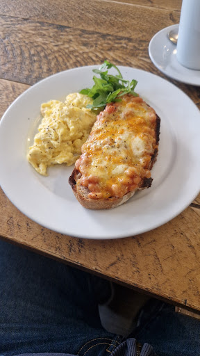 Read moreThis is just a lovely place. The staff were very friendly and polite, and there was no issue bringing in our assistance dog - who was more than accommodated. We bought two "Scrummy Hot Chocolates" and their Beans on Toast with cheese (with scrambled egg, if you ask. Be aware that this is the best tasting scrambled egg ever!). Both were amazing and highly recommended as a light snack. The price was surprising at around £11, which was cheaper than A LOT of places. The atmosphere inside was very eclectic, with local art renders decorating the walls. It was very adorable how the customer WC had a proper little shingled roof on top; bringing an outdoor feel inside. This was just an amazing place to eat and relax from the busy main streets...