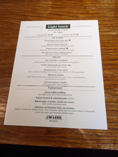 Visited for lunch on a Wednesday afternoon. Went for the light lunch option. This is served Monday to Friday between 12 and 3 pm. This gives 4 options for starters, 4 for mains and 4 for pudding. 2 course option is £ 14.95. The 3 course £17.45.