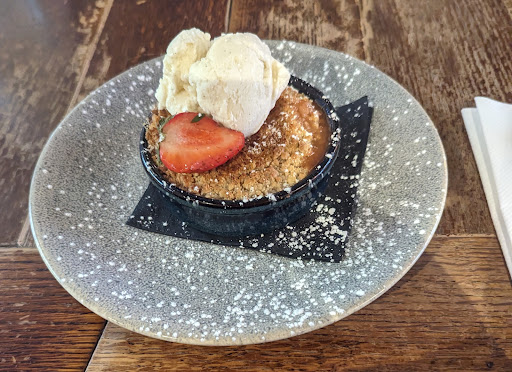 For dessert I had ordered the Strawberry, Rhubarb and Gooseberry Crumble. It was served with ice cream. I asked the server about this as was sure menu said custard. He replied that it came with the option of either. I didn’t get asked for my choice. I checked after and the menu does say custard. I didn’t bother me but it might if a customer has any allergens. We were not asked if we had any before ordering. We don’t but always nice to be asked. Putting that to one side the dessert and the ice cream were delicious. The crumble was piping hot. One of the servers confirmed they were home made on the premises. I would have liked a bigger portion though. One, because I’m greedy. Two, because it was delicious.