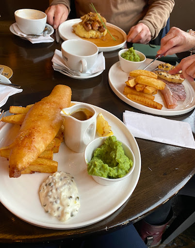 We ate whilst there and the fish n chips and bacon/cabbage/mash in a parsley sauce were excellent. The band members had burgers which they told me were delicious.