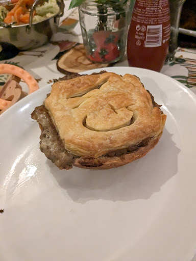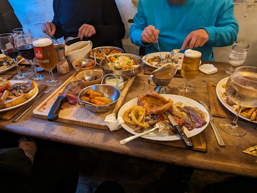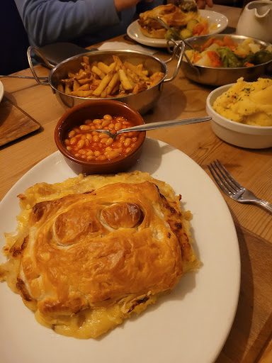 Beers were excellent, definitely a well kept cellar. Timmy Taylors was as good as it gets. The pies are absolutely AMAZING. Huge variety to choose from, all hand made while you wait (you may need a little patience if they are busy but it is worth it ). I had the haggis and black pudding - I cannot recommend this enough - it's stunning. The rest of our party had Steak and Stilton, Lamb and Mint, Cheese, Potato and Onion. They were all superb. Plenty of beautifully cooked fresh veg and a jug of yummy gravy - yes, a jug. A jug of pure Yorkshire Happiness 😊 🙂. Oh yeh - fabulous roast potatoes or really good chips and mushy peas. There are no starters on the menu because you genuinely would be unable to finish your main meal. None of us could manage dessert ! Sunday roasts on Thursday,Friday, Saturday as well as Sunday (if I remember correctly) table near us had beef , they raved about it, especially the giant Yorkshire puds. I think the owners are Farmers and most of the produce is from their farm and/or locally sourced. This is proper farm to fork eating. More than one roaring open fire, very welcoming, very friendly. Honestly, I cannot think of a negative; get along there and treat yourself. Be prepared to wait for your food, that isn't a negative - it is...