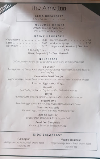 Read moreQuite frankly, l dont think the previous 2 reviewers could have stayed at The Alma Inn (and unbelievably, yes, it is possible to write a review about an establishment without having ever been there...which quite frankly makes the whole 'Tripadviser' thing wholly wrong, and should not exist, for that reason, plus a restaurant/pub/hotel etc not being allowed to opt out of Tripadvisor. lt allows the likes of the negative reviewers (below) to put themselves on an imaginary pedestal. l personally owned and ran two very successful Bistros in Wirral some years ago, and thank heavens the likes of Tripadvisor wasnt around then. In defence of The Alma Inn, l was recommended to stay here,( by a local pub l stopped to ask about somewhere good to stay overnight) So good was it, l altered my plans, and stayed an extra night ! The owners couldnt have made me more welcome..(something a single female traveller misses out on) The food was great, my room was perfect...fancy someone complaining about a room having a beam...perhaps a travel lodge would suit them more ! And finally, the icing on the cake, was Ruby, their gorgeous rescue Spaniel, tucked up in the corner..bothering nobody...but wagging her tail as people arrived and left. l cant wait to go again, and hopefully there'll be snow, to lock us in for...