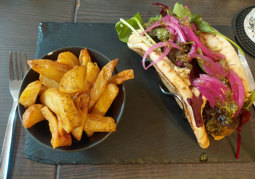 Situated in the middle of Todmorden. Great food, and a good choice of vegetarian and vegan dishes and some unusual drinks, such as a pistachio latte (3.75), which I had and was lovely, there was also a gingerbread latte, a spiced pumpkin latte, a biscoff latte and a hazelnut latte as well as the usual mocca, caramel, vanilla latte's and beetroot latte. They also have some interesting teas including; gunpowder mint tea, ginger root and lemon herbal tea, Japanese sencha green tea as well as the traditional breakfast, earl grey and decaf teas, all £2.95. The food is also different from the usual cafes, I had a falafel flatbread (£13.95) which came with thick cut chips, my friends had; the spanakopita toastie (£10.50) which was Philadelphia cheese with feta cheese and spring onion, they also do a vegan option, the "A bit fishy" toastie (£9.95), which was 2 cheeses, creme fresh, tuna mayo and red onion, both said that they loved it. My partner had the garlic mushrooms with a cheesy garlic flatbread (£11) but thought it was a little bland and could have been more garlicky, which I agreed with. We called on Rememberance Sunday afternoon and it was very busy which might account for the longer that usual wait for the food. It was also very noisy but we were sat next to a table with 2 young noisy children. We booked in advance and its a good job we did. I'd definitely recommend you try it especially if you're vegetarian or vegan and like to try different...