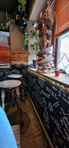 Gorgeous vegan pizzas served here - 1st think to say!! This is a quirky place, which is primarily a cocktail bar with limited beer in either bottle or can. We sat 'inside' after having done a hike, the music is different (mostly rock type) but good and coz it's after a hike, the beers were very welcome. 'Deep inside' it a small room with low ceiling and eclectically decorated place. It has the feel of a 'rockers' bar but serving cocktails primarily - an unusual mix. You order and pay for your pizza separately, from the hatch as you walk in. The wood fired pizza oven certainly delivers a great pizza. Not much can be seen from the road side, you need to walk thru the tables at the front and past the low seating area to the bar at the back. Well worth it for an alternative to the otherwise standard fair to be found in...