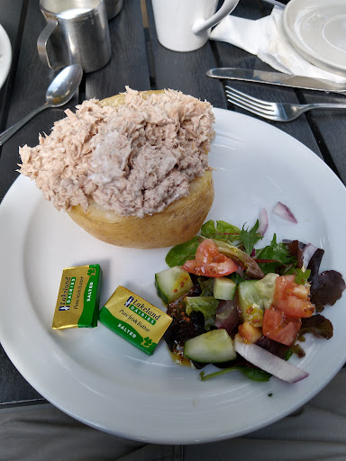 to be honest I only give a genuine review of the food and service given so here goes this cafe holds a great location and caroark next door so no brainer to pop in before our appointment. ordered x2 full breakfast and within minutes of ordering the toast appeared, nothing of quality just basic brown and white slice gutless bread of which I made a comment to the waitress but sadly she chuckled my criticism away. the meals arrived and for £10 instantly looked depressing. 1 snotty egg, half a tomato, bubble end of a black pudding and thin and small, x2 really poor commercial tasteless sausages not overly hot and pale, chewy bacon 3 slices not the best and the beans were great and hot.. overall not worth the brass, not hot and to say it only travelled what 10feet!! obviously not served straight away. the beans must have been the last to hit the plate as boiling... so 1 star overall for a poor breakfast for 2 people. sorry water gate I did expect a better meal.. your meals given to us were poor, expensive for quality and poor on taste and produce served. bread, sausages were dire bacon not much better thank god the beans were ok hot and enjoyable. that's £20 I would have preferred to have spent elsewhere... your feedback would be of interest but not essential as we will not...