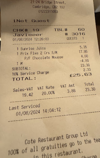 Learn moreWe love to go to Cote, Cambridge, and we try to often, as we have always over the past 10 years received wonderful service and food.