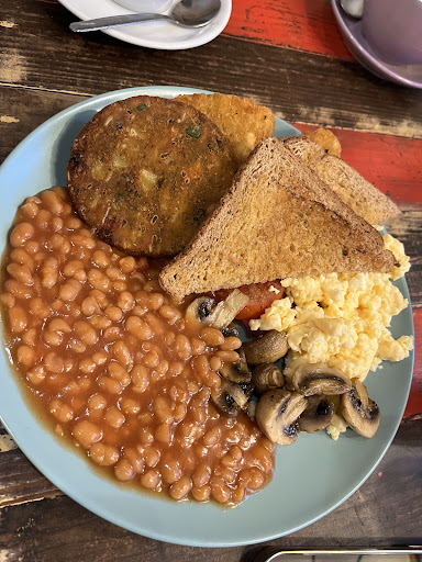 I love going cafés and try their special delicacies and specially their home made coffee. This cafe around the main street of Cambridge is no different. It was rainy and cold afternoon where we planned to have some English breakfast and coffee to warm us up, We found this place and the entrance gives you a retro feel and it was nice and cozy inside. Good to know they serve all day break which is even better coz some other places they have specific times for breakfast. I ordered myself omelette and mushroom, hummus and veggies, boy oh boy they both where damn delicious and totally loved the food. I would definitely recommend that and a must go cafe if you are around Cambridge. Definitely cafe...