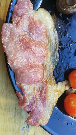 cheap sausages and hash browns (both of which had unmistakably been cooked from frozen) tasteless, milky scrambled eggs, along with extremely salty, over cooked cheap bacon, finished with microwaved beans and some plain white bread. I also overheard your staff giving another customer less than friendly service, so I knew it wasn't worth my time to make a complaint (and furthermore I was en-route to work so time sensitive).