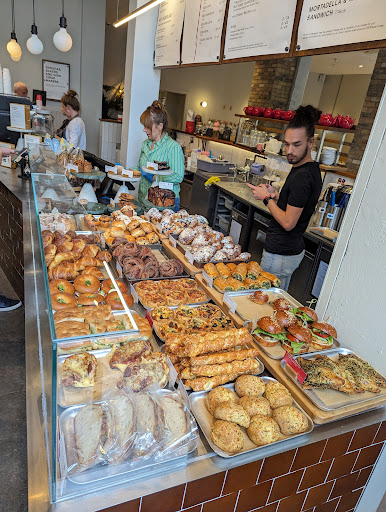 The bakery's interior is warm and inviting, with a rustic charm that is reflected in its wooden tables and vintage decor. There is ample seating available, making it a great spot to enjoy a leisurely breakfast or coffee with friends.