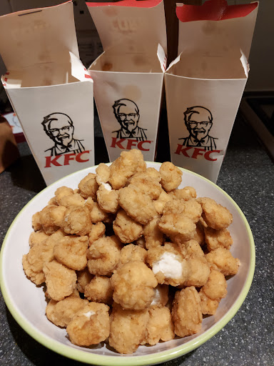 As mentioned in an earlier review I can't cope with spice or pepper too well- but on picking up my final delivery I saw... the chicken... wonderful, wonderful popcorn 🍿 chicken.... i promptly advised the guy working tills I'd be back shortly! "Heigh Ho Silver! Away!" (As I gently encouraged my poor, battered scooter to make another trip).