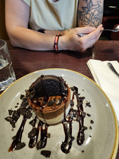 So we were greeted on arrival by a young lass, 16:30 this past Friday, was a second birthday meal, this was just intimate my wife and I, we were seating in a booth. Waitress had noted it was a birthday meal, so to my excitement I got to choose the music. The waitress notice the sun was blaring into my wife's face so without being asked, she went outside and made the sun disappear. (Put the blind down) We ordered our drinks and both the cocktail and mocktail were nice. (I've had nicer pina colada's didnt look like one and wasnt very creamy.) so had a different drink the second time.(oreo milkshake, just tasted like plain chocolate milkshake tbh) Both ordered the flat iron steaks with steak sauce- great work chefs cooked to perfection, really tasty. Unfortunately the waitress went on break and was having her dinner. So had a different male server , whom smelt terribly of B.O not very pleasant when reaching across the table, he wasnt rude but became diffensive when I asked where the water for the table had got to) By time meals came (perfect wait time btw, not too quick and not too long) it was only us and another party just joining the restaurant so in turn, little atmosphere. Nonetheless delicious meal, After the main we were thinking of getting a dessert and to our surprise an oreo cheesecake with a sparkler came over, the waiter awkwardly singing happy birthday to a very quiet (exception of background music) restaurant. He gave up towards the end, (fair) i would of sung it,way over the top if i was him, getting into the groove.