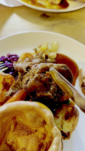 The carrot and parsnip slices are also properly cooked to creamy, and the tenderstem is also fresh. Potatoes and Yorkshire puddings are crunchy yet not greasy. Stuffy ball isn’t oily either, more like scotch egg minus egg.