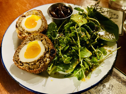Decent scotch egg. Jammy yolk (though not runny), crunchy shell, balanced spice, and not-greasy pork. The salad is great.