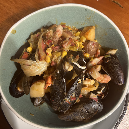 The white sauce for the scallops is delightful, light with a hint of lemon. The scallops are on the slightly undercooked side. I like raw food, but maybe frying it a little longer would work better with the sauce. The mushrooms are lovely.