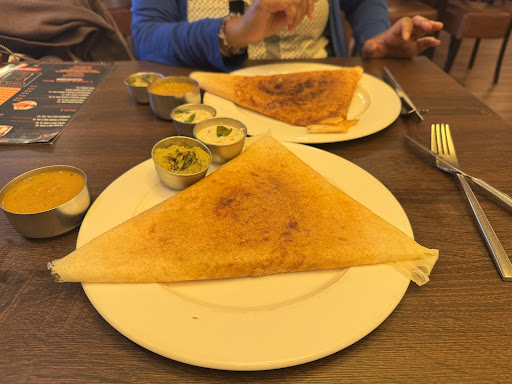 I have eaten here 5 times. It is unfortunately going downhill. Whilst the food is generally of a good quality and the prices very wallet friendly, the service is disorganised and slow. They seem to only be able to get one naan out of the kitchen at a time, even when the place is mainly empty. We once waited 15 minutes for a naan that was ordered at the same time as everything else, people had mostly finished the curries by the time it arrived. It’s quite frustrating to be sitting in a restaurant that’s very quiet, not getting served very well whilst there’s a continual queue of just eat and deliveroo riders turning up to collect things. Sure restaurants can operate takeaway service but surely should focus on getting the basics in house right too. Most recent visit I have never had Indian food repeat on me so badly, presumably due to the amount of oil or ghee consumed, the bhajis were greasy not crispy, the vegetable side dish was swimming in oil. The dosa are generally nice too but last visit they served it with dal and not sambar without a mention, as though we were too stupid to know the difference. Don’t disrespect your clientele by lying to them is a fairly fundamental restaurant recipe for success. The music is all over the place too, sometimes it’s like Eurovision techno, sometimes it sounds like Bollywood, and sometimes they put old football matches (like from the previous weekend) on BBC iPlayer on the giant TV… what is this supposed to do for the restaurant experience?! Has real potential but it’s going in the wrong direction, quite a lot of poorly attended to little details suggest they don’t really care enough about the details that make a...