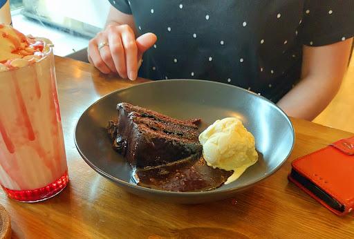 After a long evening walk with our daughter on a chilly January Saturday, we made the Pumpkin Patch our final port of call for cake and hot chocolate. We strolled in at 4:25pm and found a table that had enough room to accommodate the pushchair in a bustling restaurant filled with people eating and drinking gorgeous looking food and hot drinks. My wife went to the bar to order and peruse the cake selection only to be told, "it's takeaway only, you know." I looked around bamboozled at the patrons enjoying their purchases, clearly not having taken their's out. The place closes at 5pm, unless I'm going to eat the cake with chopsticks and drink the hot chocolate through a snorkel, it will not take me any more than ten minutes to be out of their hair and on our way.